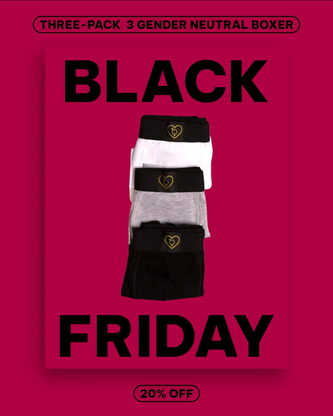 THREE-PACK composto da tre Gender Neutral Boxers; uno Nero, uno Bianco e uno Grigio